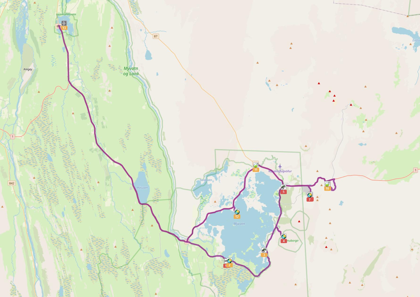 On the way out, I’ll stop at Goðafoss for the waterfall and geocaching. Next town is Akureyi, which will probably be a breakfast stop before picking up the penultimate waypoint for an Adventure Lab whose bonus final is somewhere near Reykjavik. It’s the last of long drives.