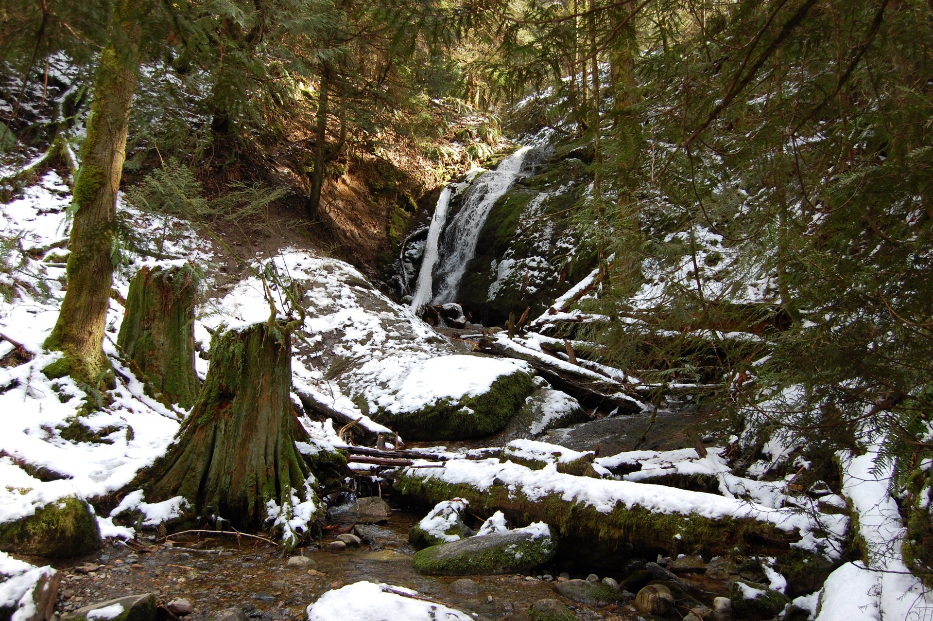 By luck of the draw, we ended up closest to the Nike-Horse trail that would take us on a counter-clockwise loop down, where we’d see Far Country Falls, which is pretty any time of the year.