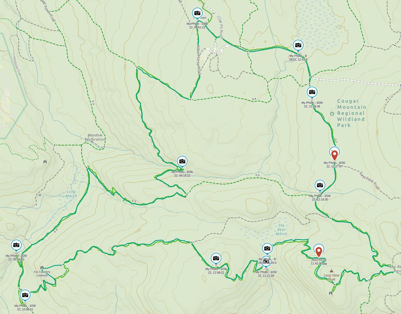 Total hike, with stops, was just over four hours. Compared to last week’s pacing hike, this was more enjoyable. I also picked up four geocaches. Only 95 more to achieve the Cougar Mountain Blackout that my good geofriends completed ten years ago!