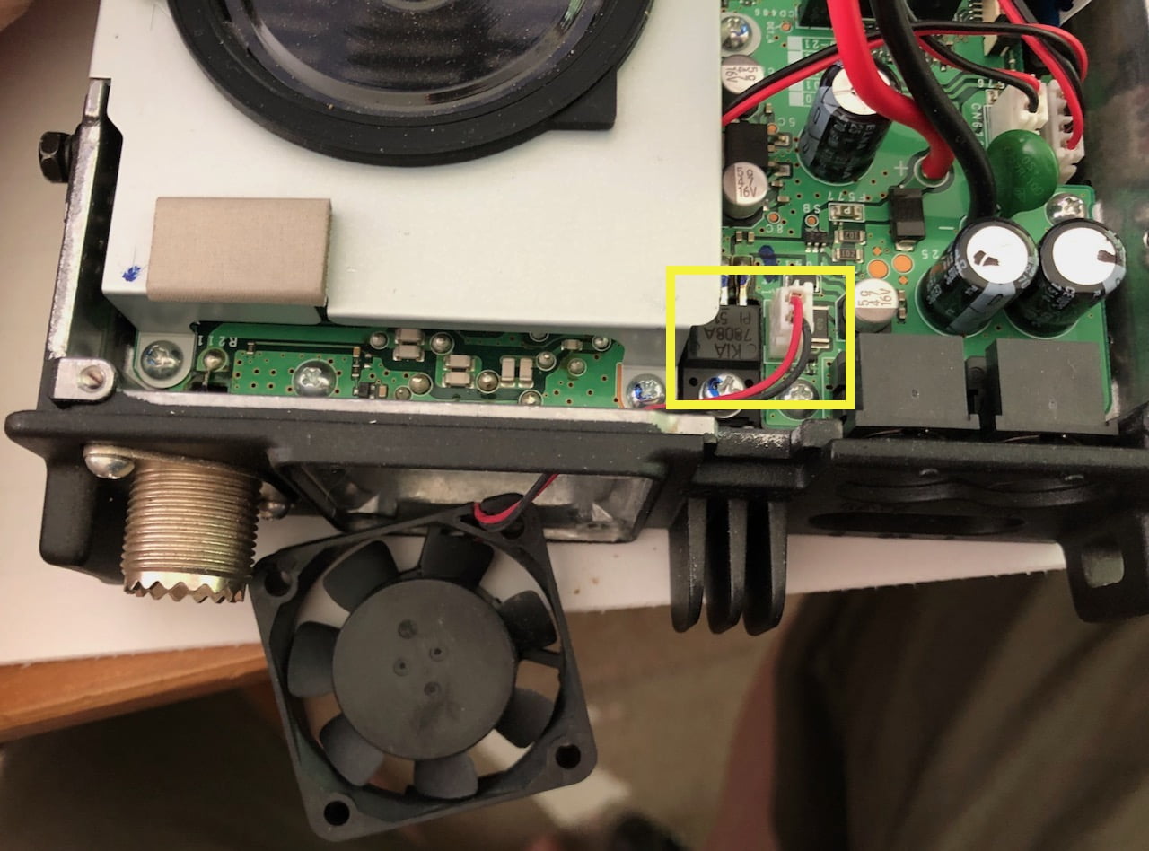 The new fan is so quiet I wasn’t sure it was running (a brief inspection confirmed it was). I liked the result enough that I retrofitted my Icom I208H with the same fan. The only difference in that procedure is the fan is flipped to blow into the radio.