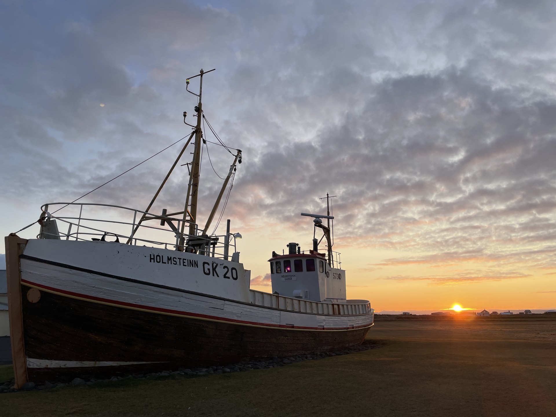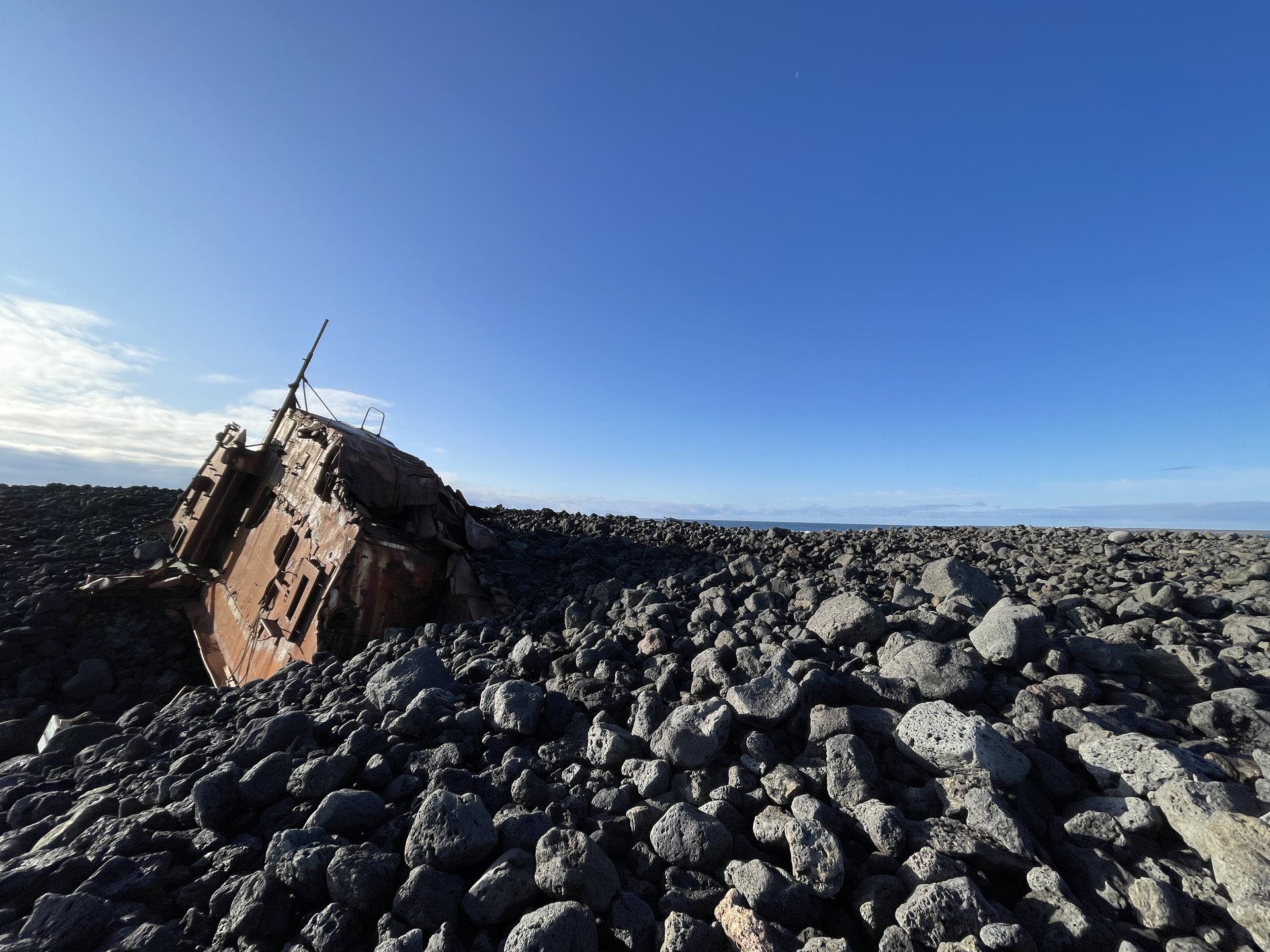 Continuing my sorta loop, I next visited Þórkötlustaðane (Hópsnes to friends), a peninsula by where many ships have been stranded. There are several interpretive signs for each. Many are just decaying to metal, though this one was still obviously a ship.