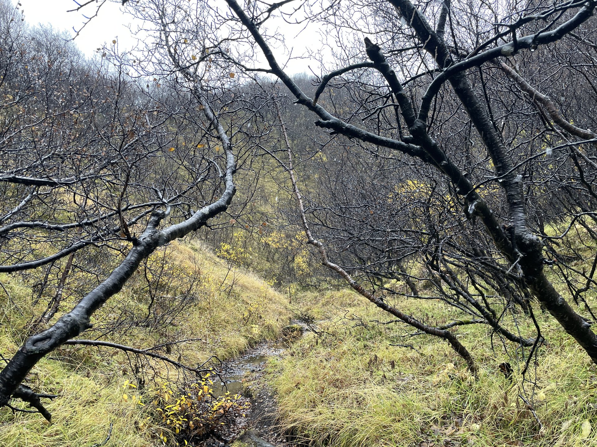 One of my first impressions of Iceland was the lack of trees. Apparently the Viking settlers cut them all down for fuel and building things. There are efforts to replant them, but those will take time. This area near Þórsmörk is one of the lusher areas, very pretty with a trail running between trees.