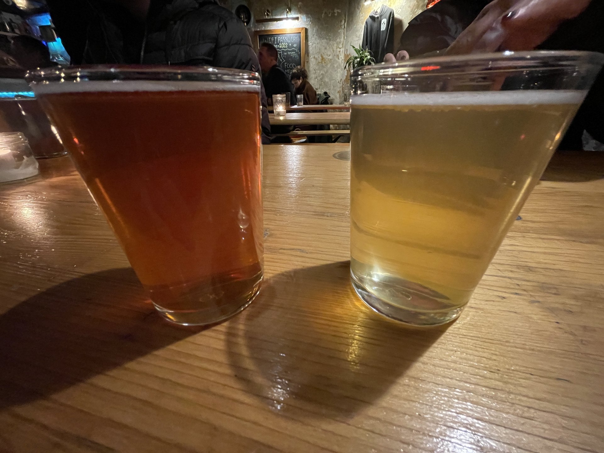- Kofinn (based on the geotagging of my photo), as mentioned before, I was feeling buzzed. No food here, just two smaller beers to try: a darker tomato influenced (?) local variety that was very good and a pale lager that would go very well with the taco above.