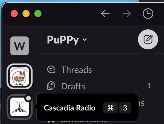 Slack uses the concept of “workspace” to separate ownership. A person can subscribe to more than one workspace. For example, I currently belong to four: WT8P, Parks on the Air, Cascadia Radio and PuPPy (Puget Sound python). Each one lets you customize a profile — on PuPPy, I wouldn’t use my call sign. I’d just explored this with my own class, but it might make sense having a shared workspace for students to mingle and set up QSOs with each other. It really depends how much you want to retain information once you hit the 10k limit. This is one reason I’ve been posting content I create on my blog for future use.