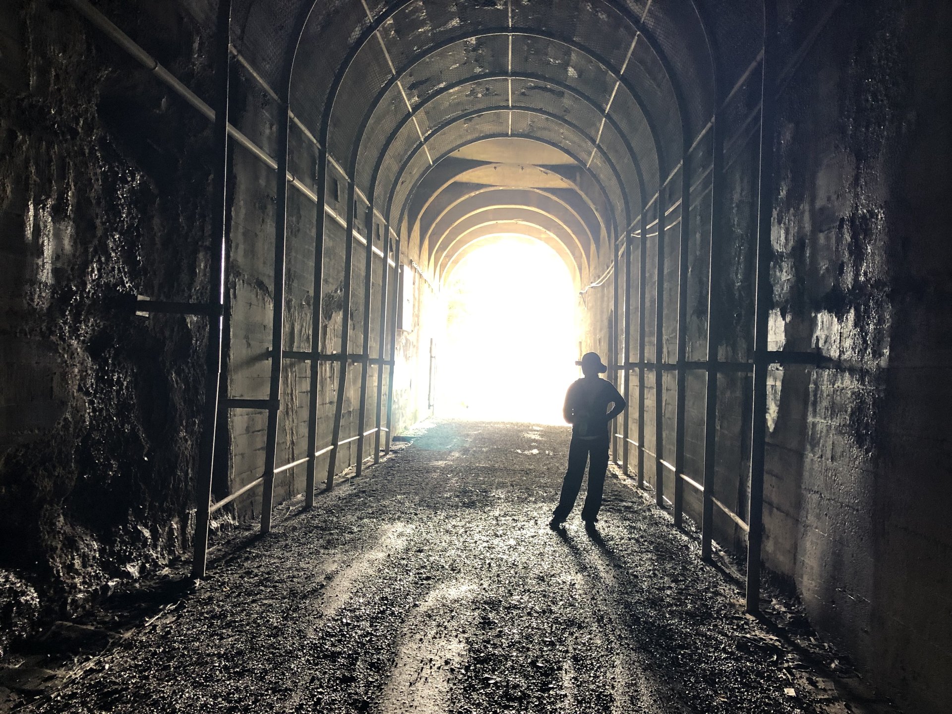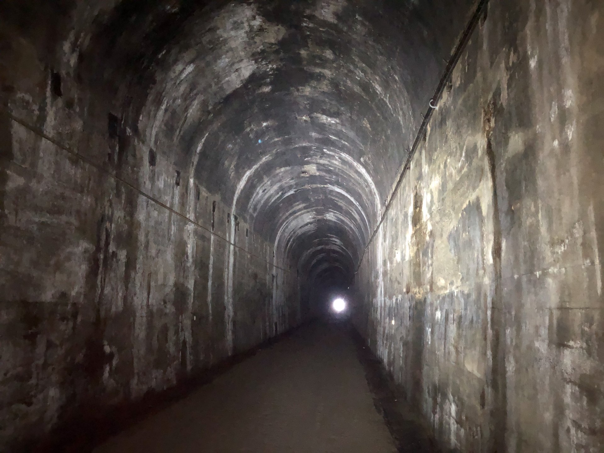 The course starts with the pitch-black 2.3-mile tunnel. While you can see the slowly expanding pixel of light, it’s not enough to avoid banging into something. A flashlight or headlamp is essential. Runners have headlamps that they can drop off at the first rest stop past the tunnel exit. On extra-bright, my NiteRider illuminates the inside walls well.