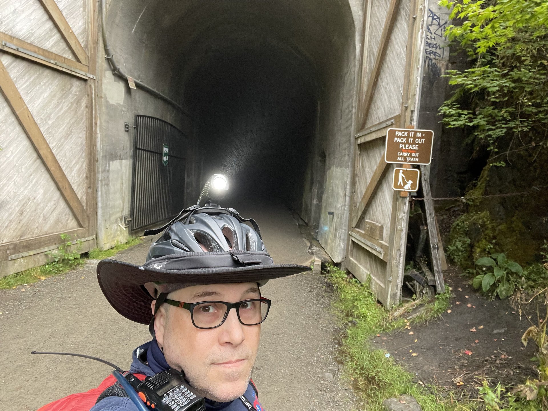 On my most recent event, I was keen on getting through this before the faster marathoners did; otherwise, I’d be waiting on the other side for the slowpokes in the crowd to work through. Dark tunnel + maintaining distance + echoes from a lot of people in it == not a great time on a bike. Although I was riding at a decent clip, I could see little lights bobbing around behind me. Some of these folks are fast.