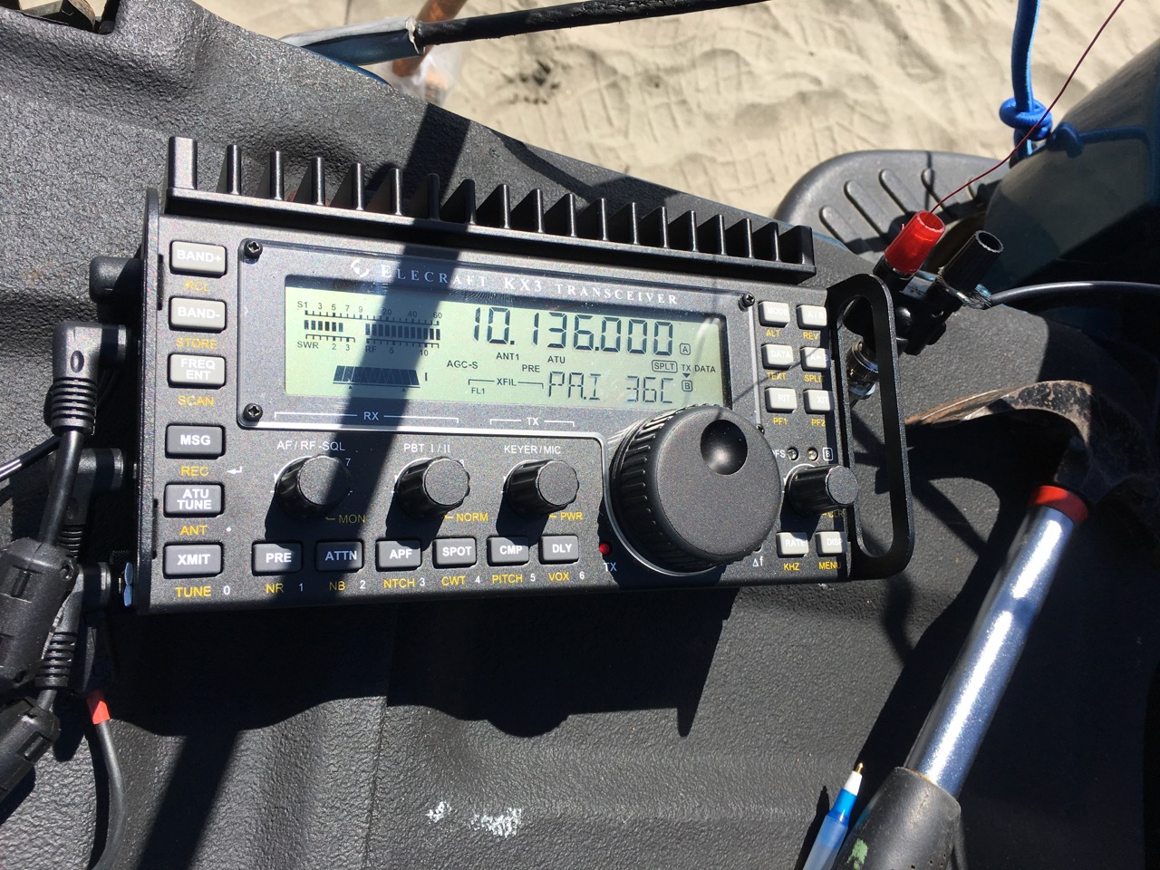 I used my elecraft KX3 at 5-12W for most of the time. To the right, you can see the wires feeding directly into the radio. The internal tuner on this is pretty amazing.