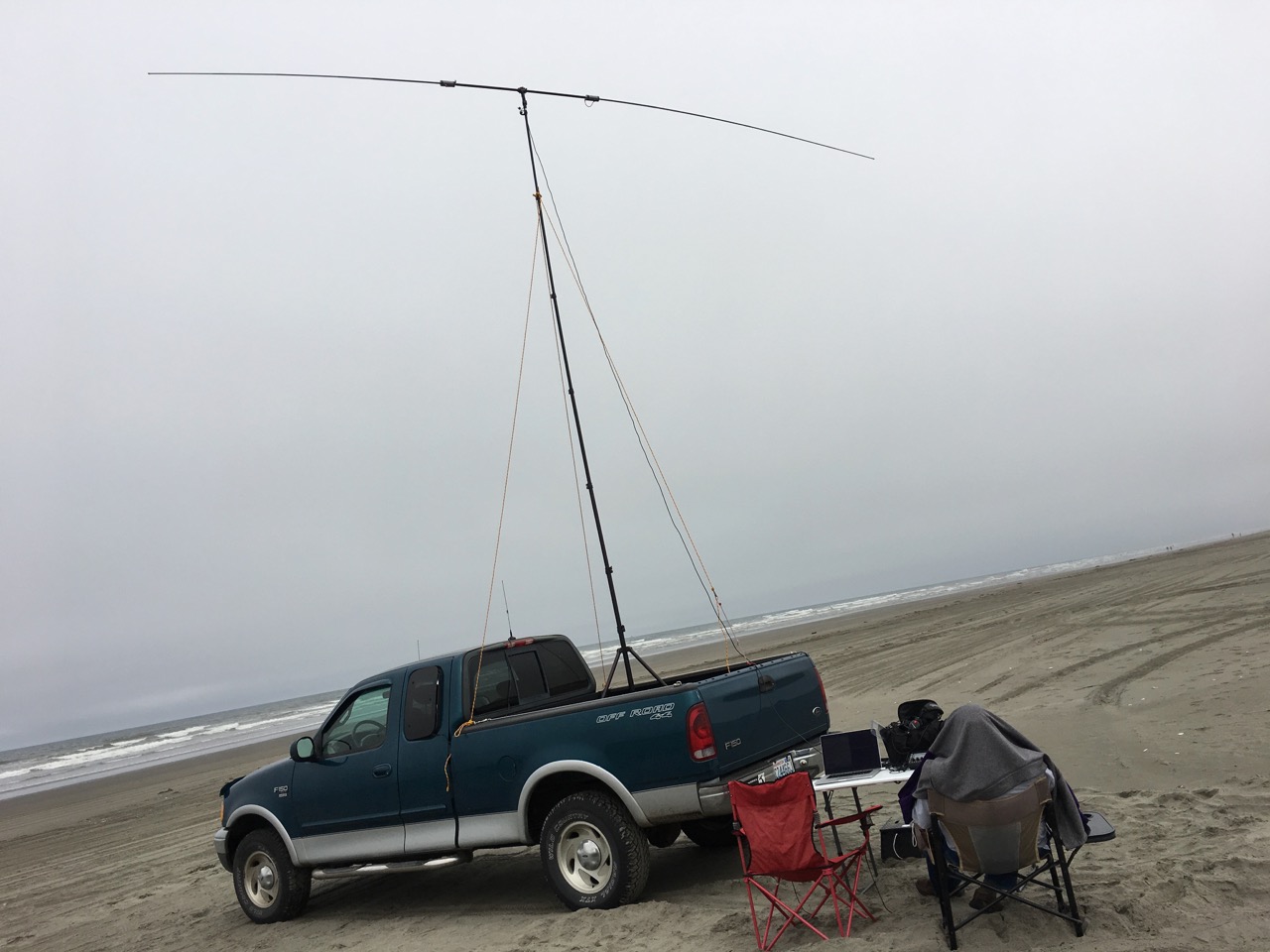 There were scant formalized opportunities for field day this year as local clubs either didn’t have a formal program (Redmond) or weren’t actively open (Issaquah), so I joined my friend K7IP in Ocean Shores to mess around with radios and do some geocaching. We operated from the public beach south of town. (4WD very helpful for getting there.)