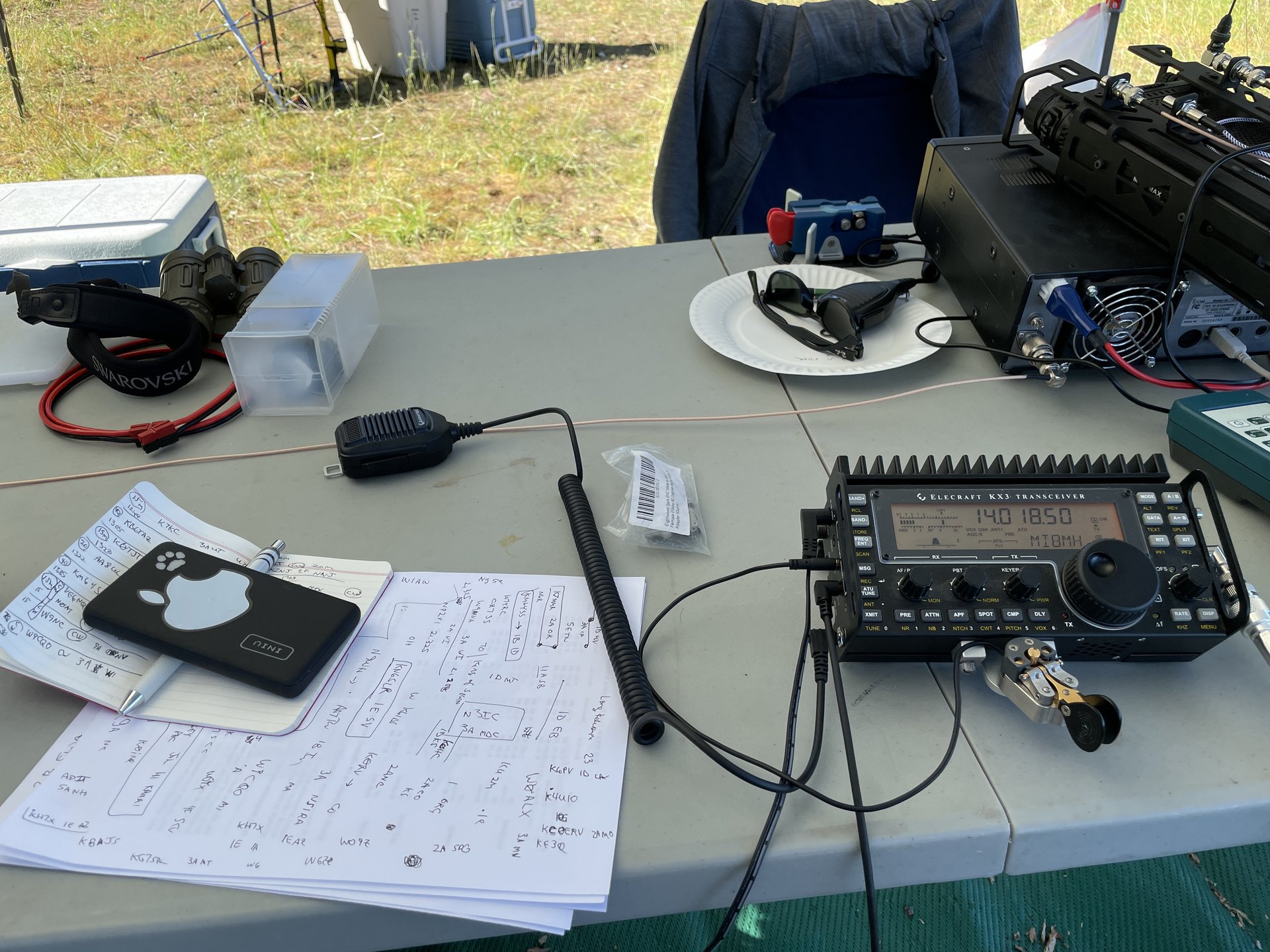 Paul brought his ICOM 7300 (HF) and a Yaesu 857 (HF + VHF + UHF), but stuck with the ICOM. I used my Elecraft KX3. Neither of us was mentally ready to have our brand new K4s in the field just yet.