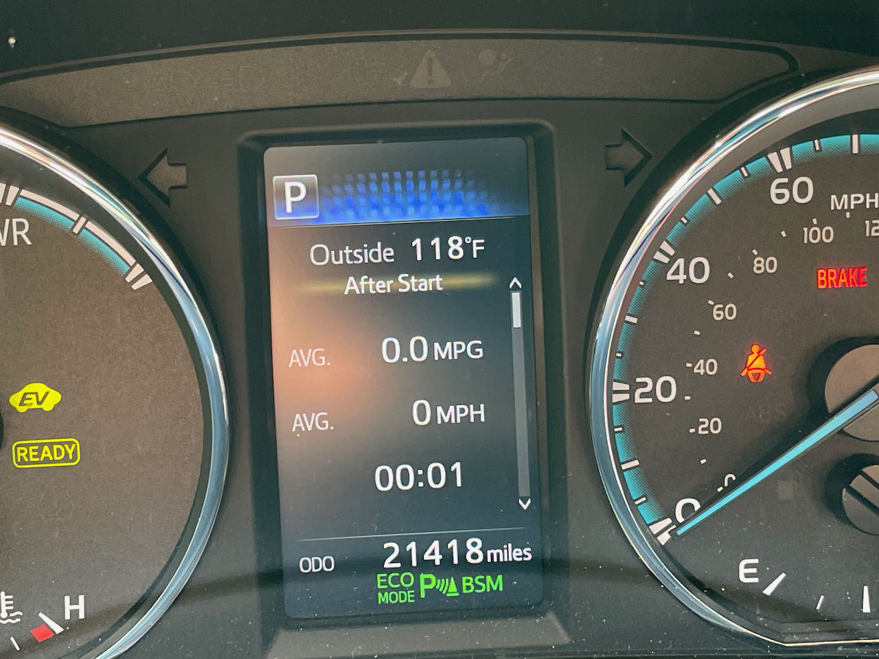 The car didn’t like it, either. My black steering wheel inside my black hybrid was too hot to touch.