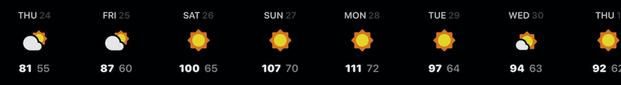 During the last week of June, there was a crazy forecast. Sometimes the app, using Dark Sky, has an instability problem with far-future dates, but this wasn’t changing: