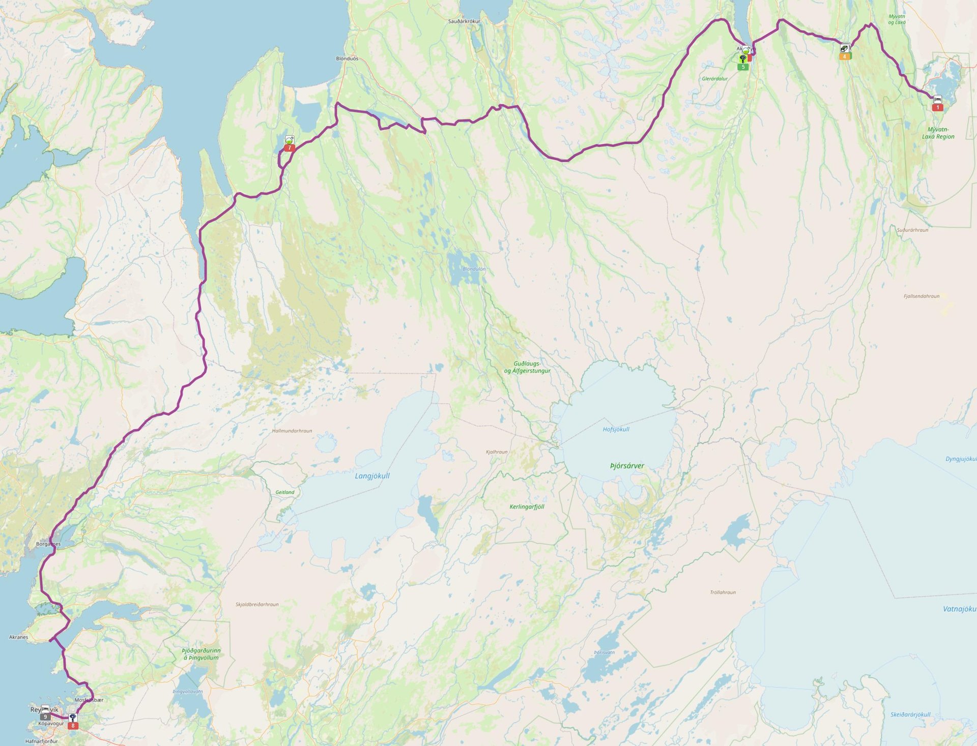 Day 1: Arrive 6:15 am and rent a car. Overnight in Reykjavik.
