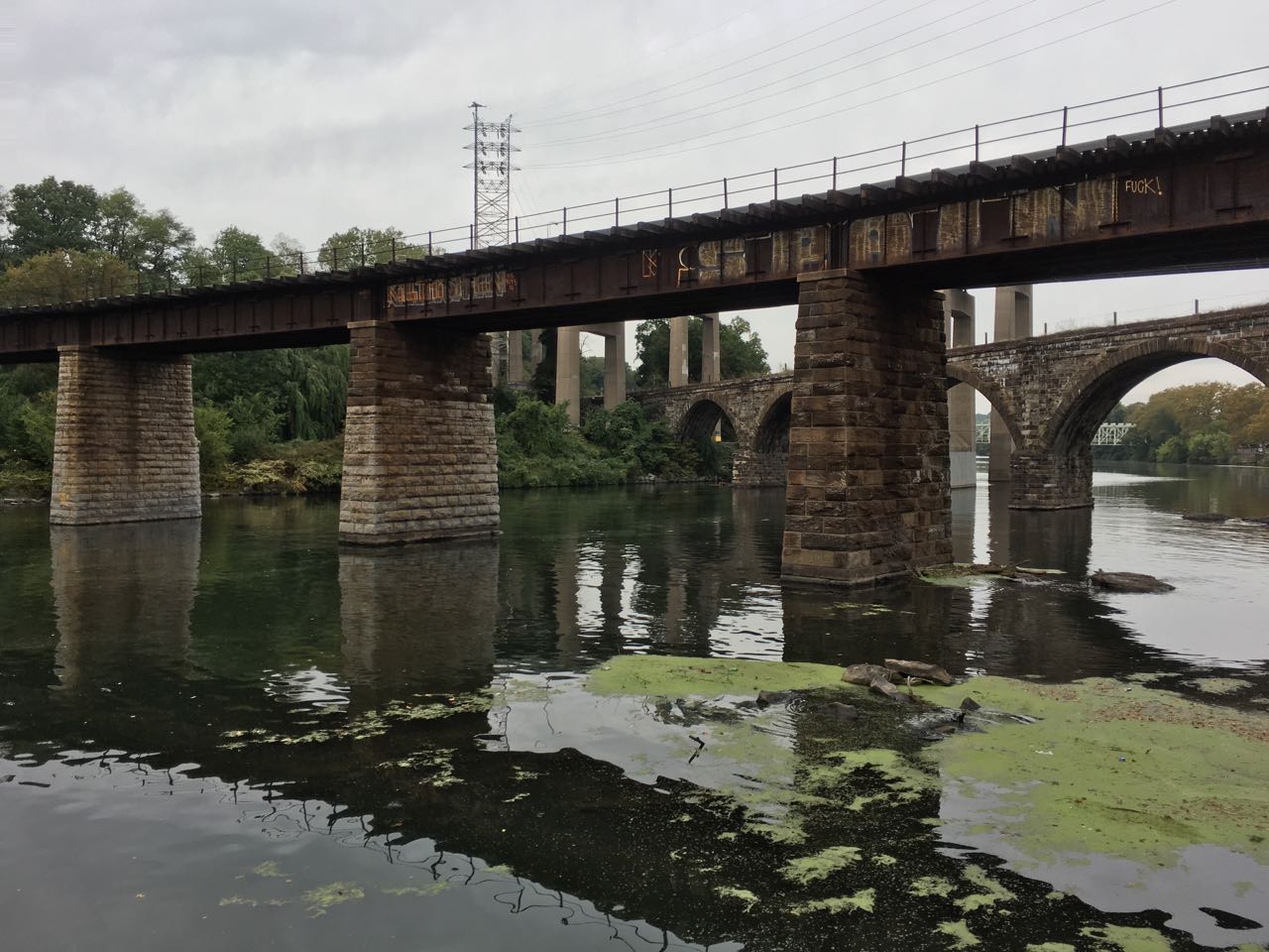 While stopping at the restroom at Valley Forge National Park, I discovered to my glee I could shunt the hot air from the hand dryer into my jacket. After about twenty minutes of this, I was feeling better and decided to tour around the park, getting virtual geocaches. I thought I’d be clever and make my own route back onto course before coming to a bride that was out of service for the indefinite future. Denied, I trekked back. The rain stopped, but it was pretty gusty.