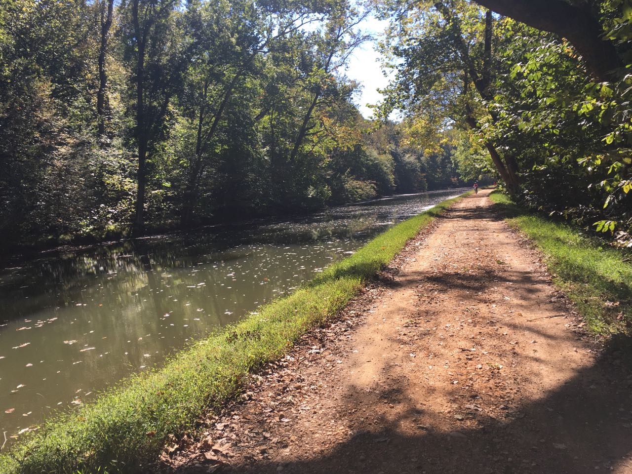 The C+O towpath looks like this for a long time. The canals (left) have gone unused, leaving stagnant water and algae pools. It’s dirt and generally fine on slightly-deflated 28C tires. (However, I would have preferred wider, especially later.)