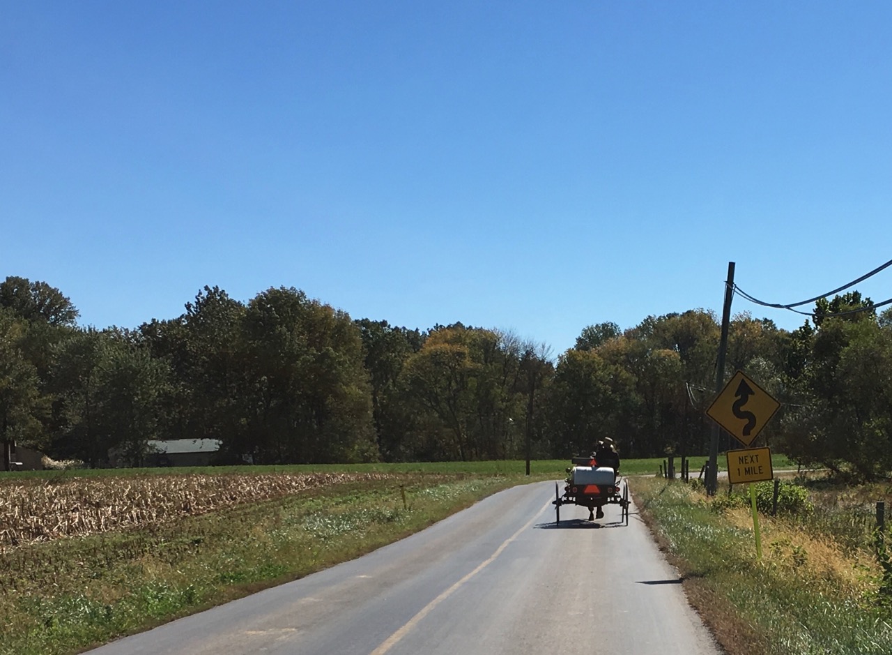 Back on the road, and with a decent amount of time before I had to head back to camp, I enjoyed the rolling hills of Amish country. I came upon a buggy and, not really knowing the etiquette, waited until it was safe to pass with a wide berth.
