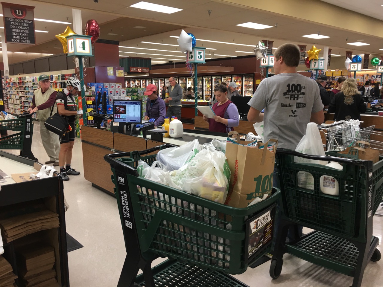 And finally, I made it to the grocery store where we bought three meals’ worth of food for fifteen people. Two carts, just under $400 worth because we over estimated the pasta consumption: