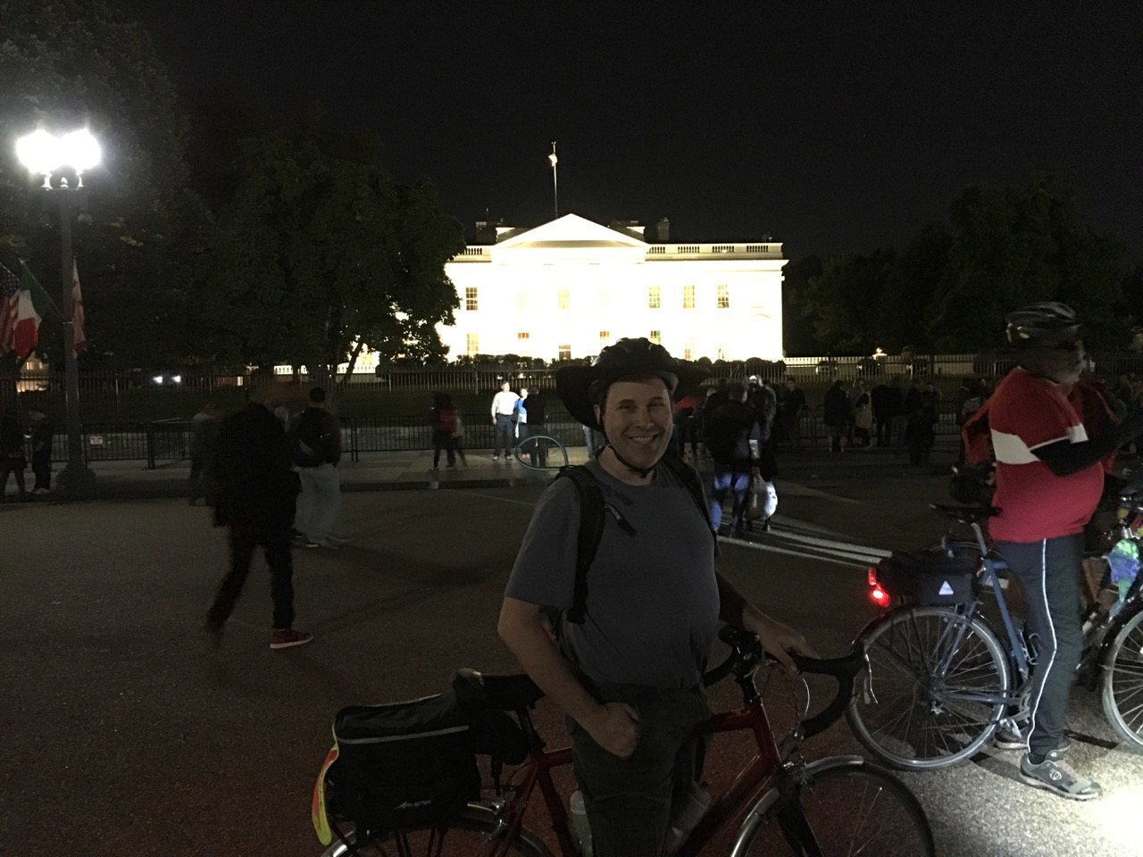 One of the local ride leaders offered to give us a nighttime tour of the Washington, DC monuments, something I could not pass up. This was the closest I’ve ever been to President Obama! There were some locals who apparently set up a kiosk on the street and extol their unique interpretation of Biblical Apocalypse.