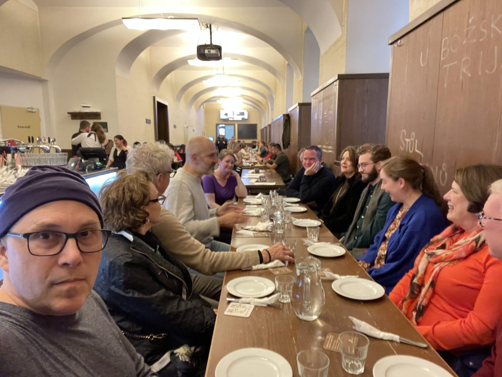 - Bokovka Wine Bar – The place had great ambience and was good for some background on the guide’s experience as Czechia transitioned from Communism. We sampled a white and a red. I am not a wine person. The red was not my glass o’ wine, very acidic.