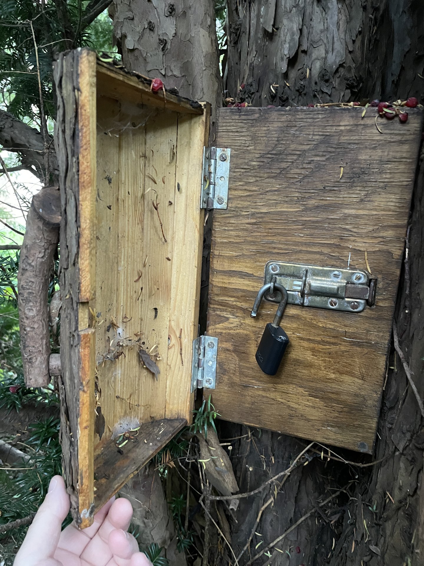Log opens to reveal the lock