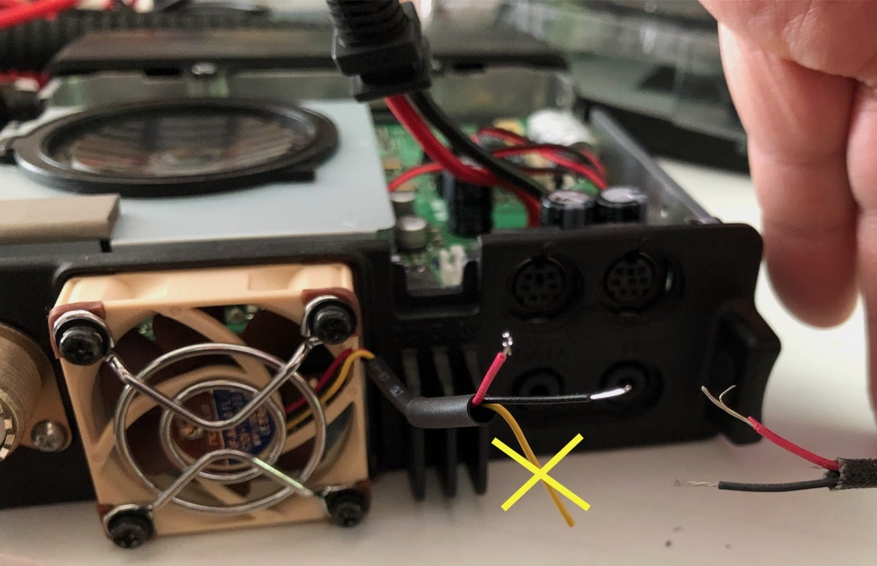 The new fan is so quiet I wasn’t sure it was running (a brief inspection confirmed it was). I liked the result enough that I retrofitted my Icom I208H with the same fan. The only difference in that procedure is the fan is flipped to blow into the radio.
