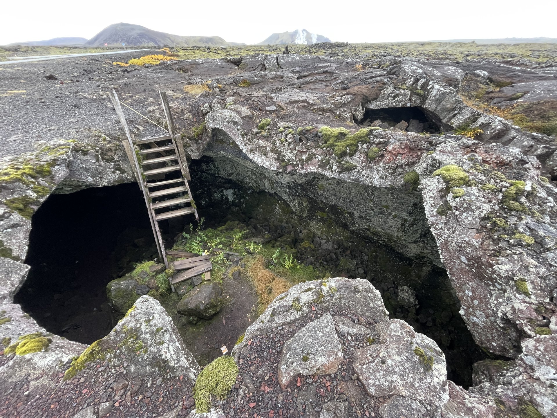 And afterwards, I did a geocaching lightning run picking up everything I could to get me past 100 finds in Iceland. Among the more unusual was the section of volcanic holes, like the one above where someone put a box for people to find. The ladder says it all, yet I looked for it anyway.