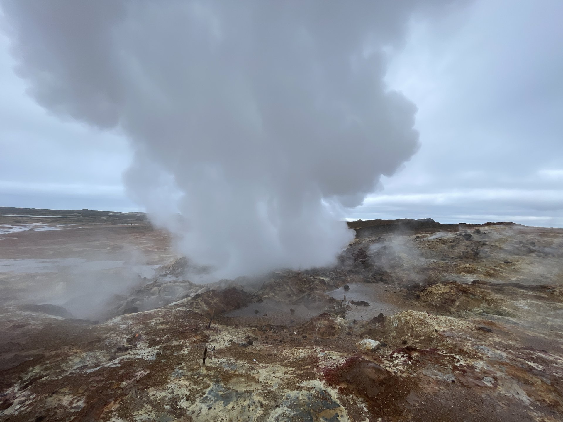 The last one of site I visited is Gunnuhver crater, the largest and hottest mud pool on the peninsula. The name comes from a legend of Guðrún Önundardóttir (“Gunna”) who became a murderous poltergeist. She was eventually cast out by a priest named Eiríkur, and thrown into the geyser now named after her. It is a spectacular spot: