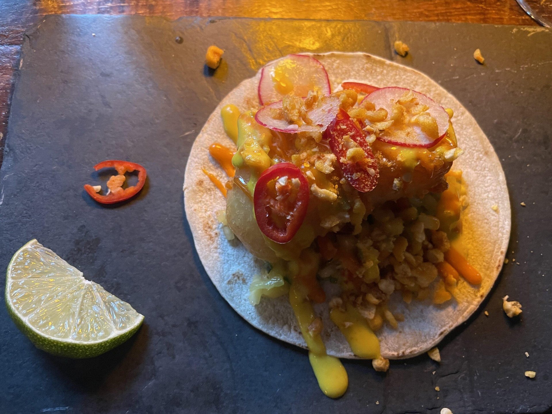 - Sæta svínið – this was a gastropub where we had a fish taco (crispy cod) that was very good. I removed several of the hot peppers. Beer or wine was an option for the drink. After my half of a half liter of beer and child-sized (by request) wine, I was feeling pretty buzzed.